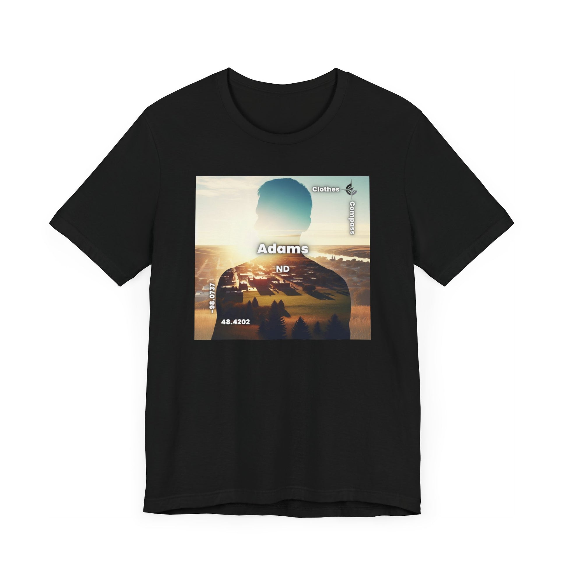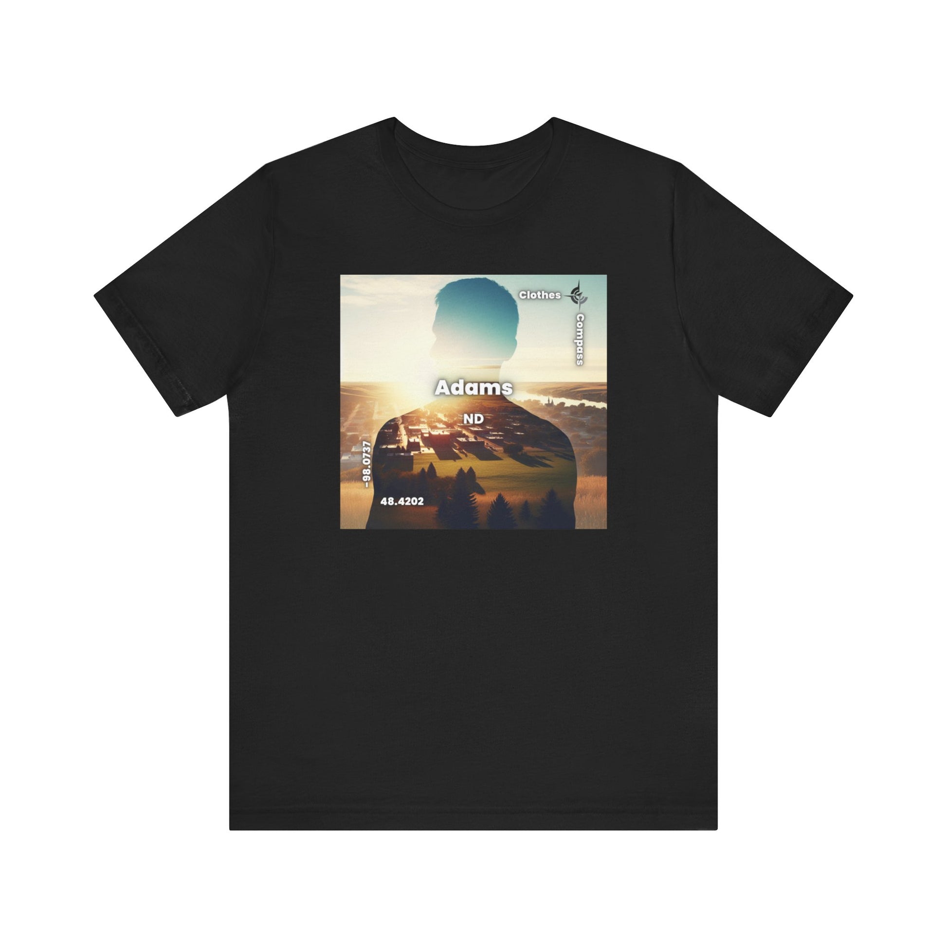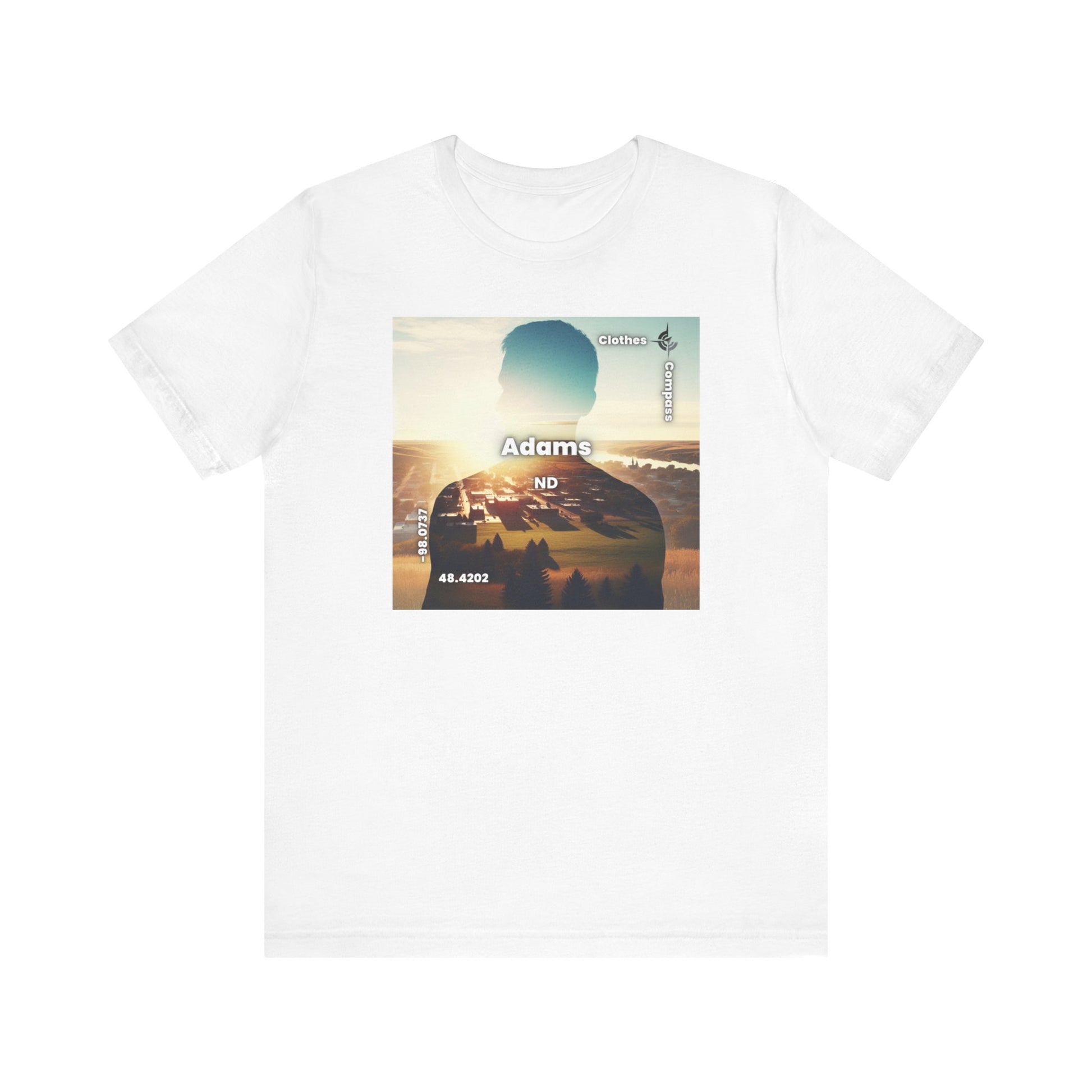 Get ready to elevate your streetwear game with our latest t-shirt design featuring a mesmerizing double exposure of a person's silhouette overlaid with a clear day view of Adams ND landscape. The photorealistic details and calming mood make this tee a