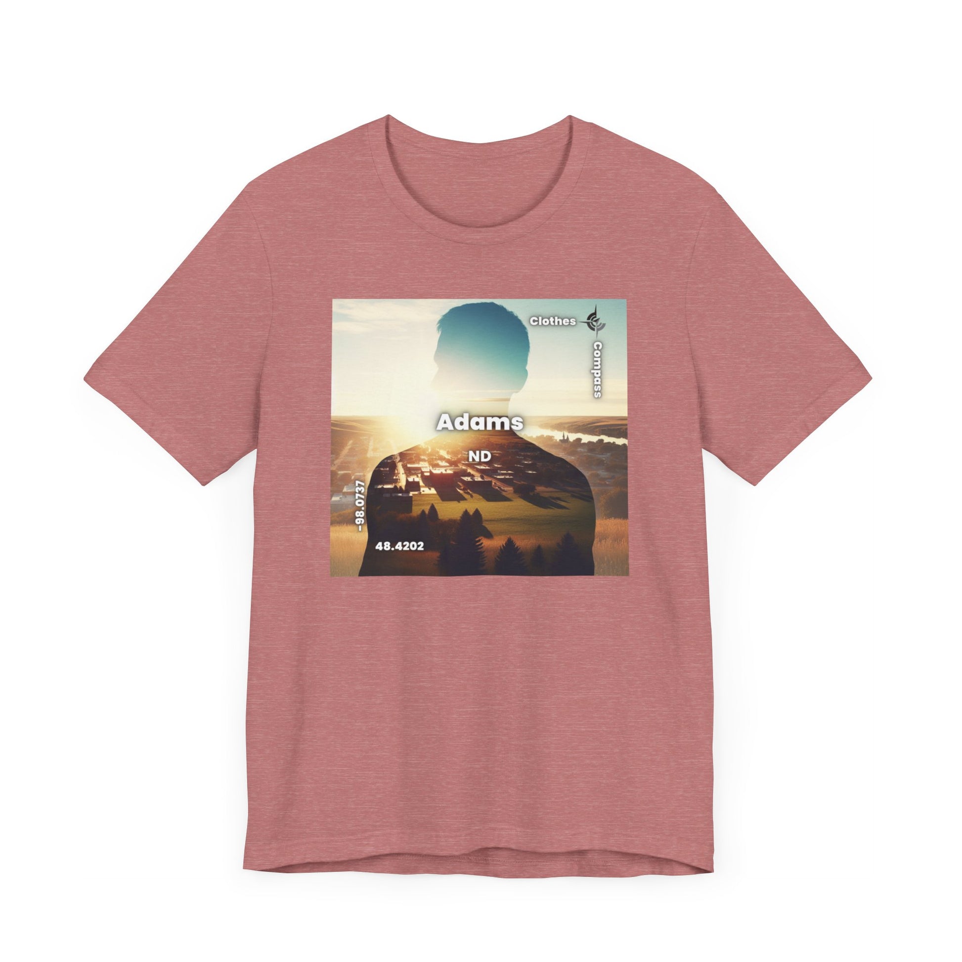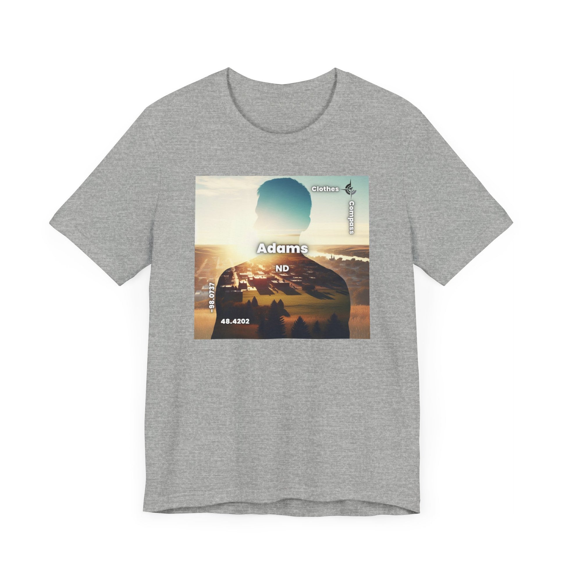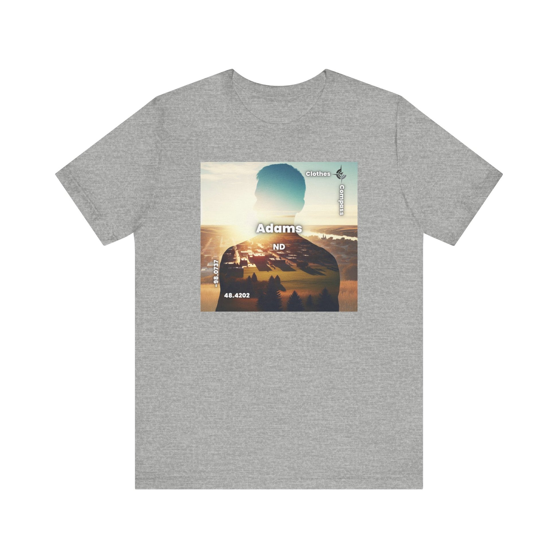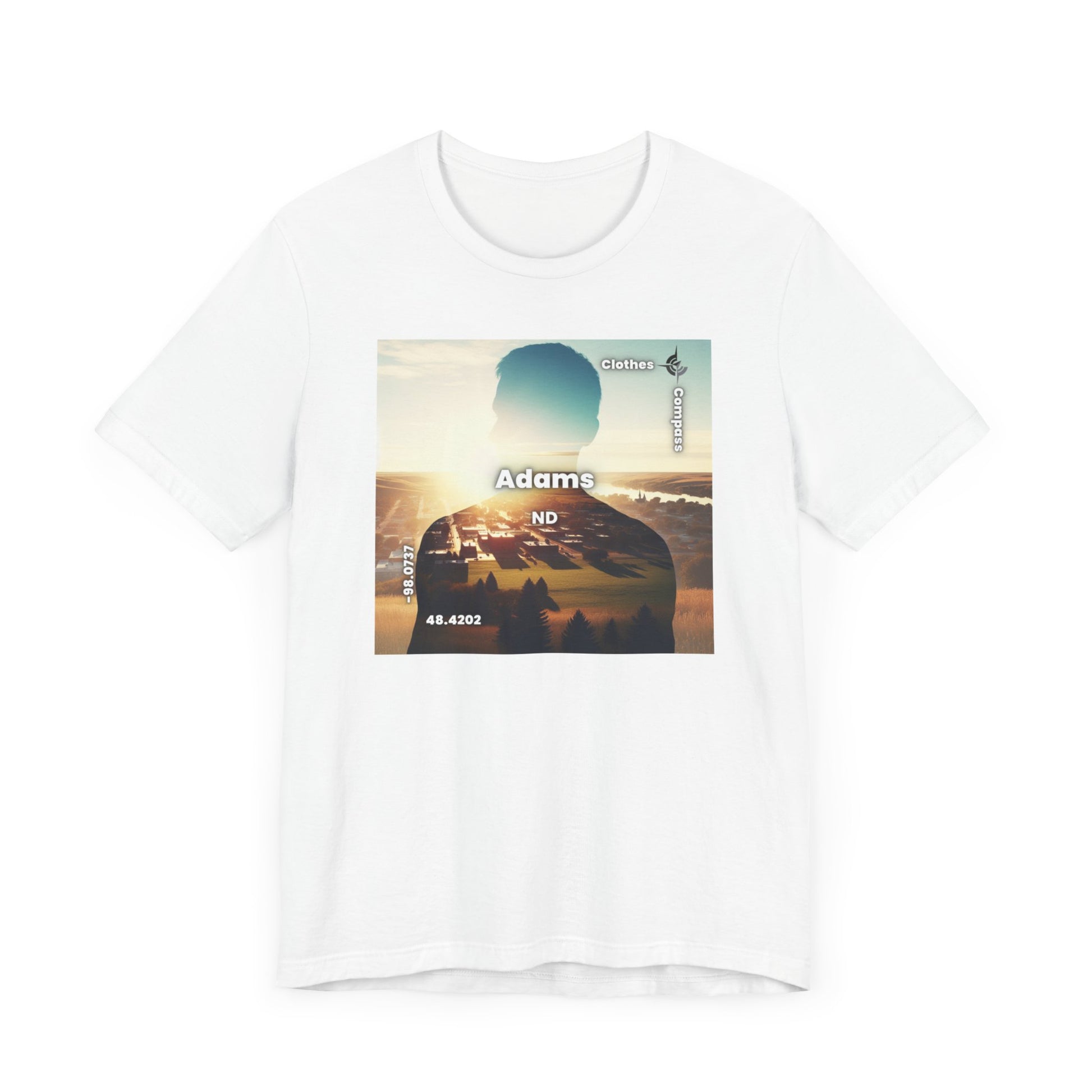 Get ready to elevate your streetwear game with our latest t-shirt design featuring a mesmerizing double exposure of a person's silhouette overlaid with a clear day view of Adams ND landscape. The photorealistic details and calming mood make this tee a