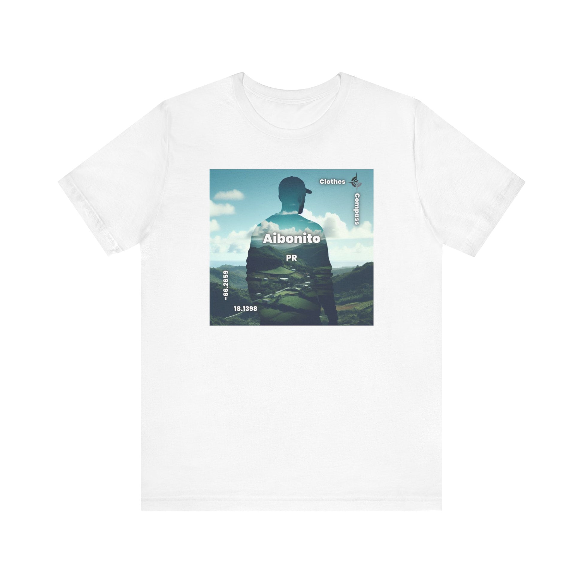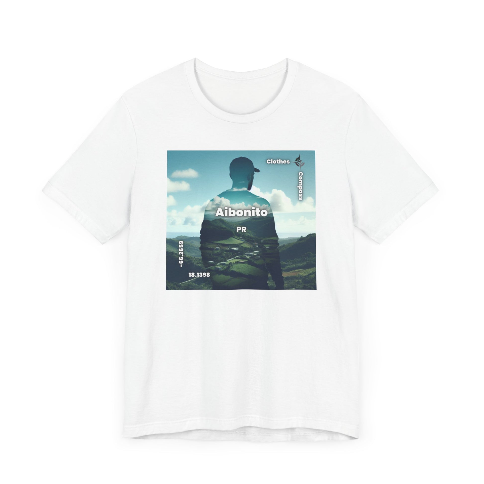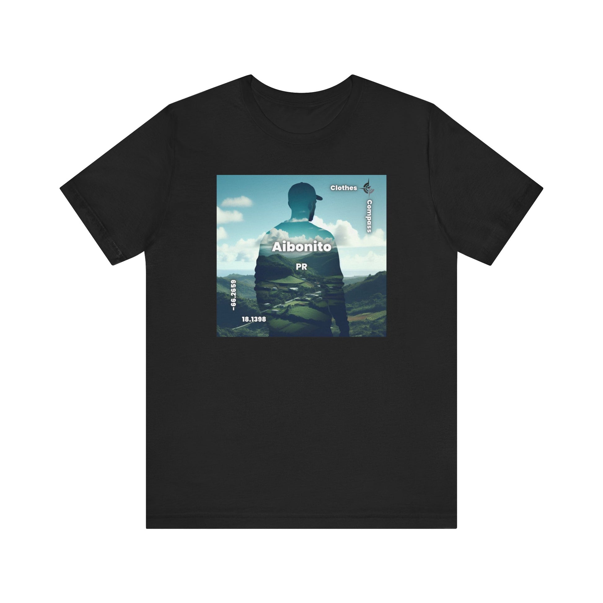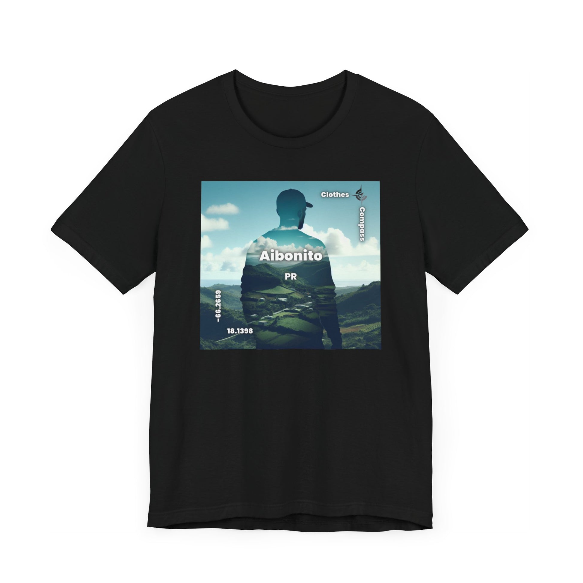 Introducing our newest streetwear tee featuring a stunning double exposure of a person's silhouette and a breathtaking view of Aibonito, PR. The photorealistic design captures the serene mood of the landscape, making it the perfect statement piece for