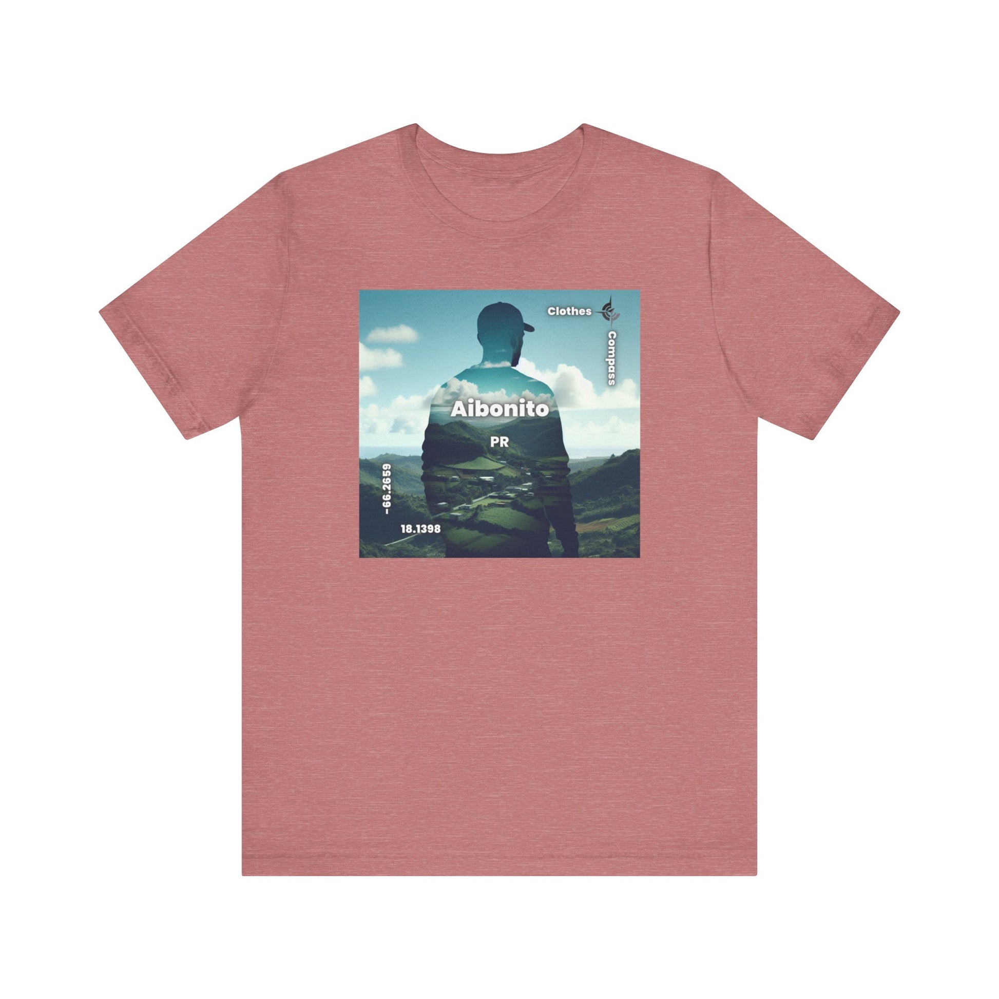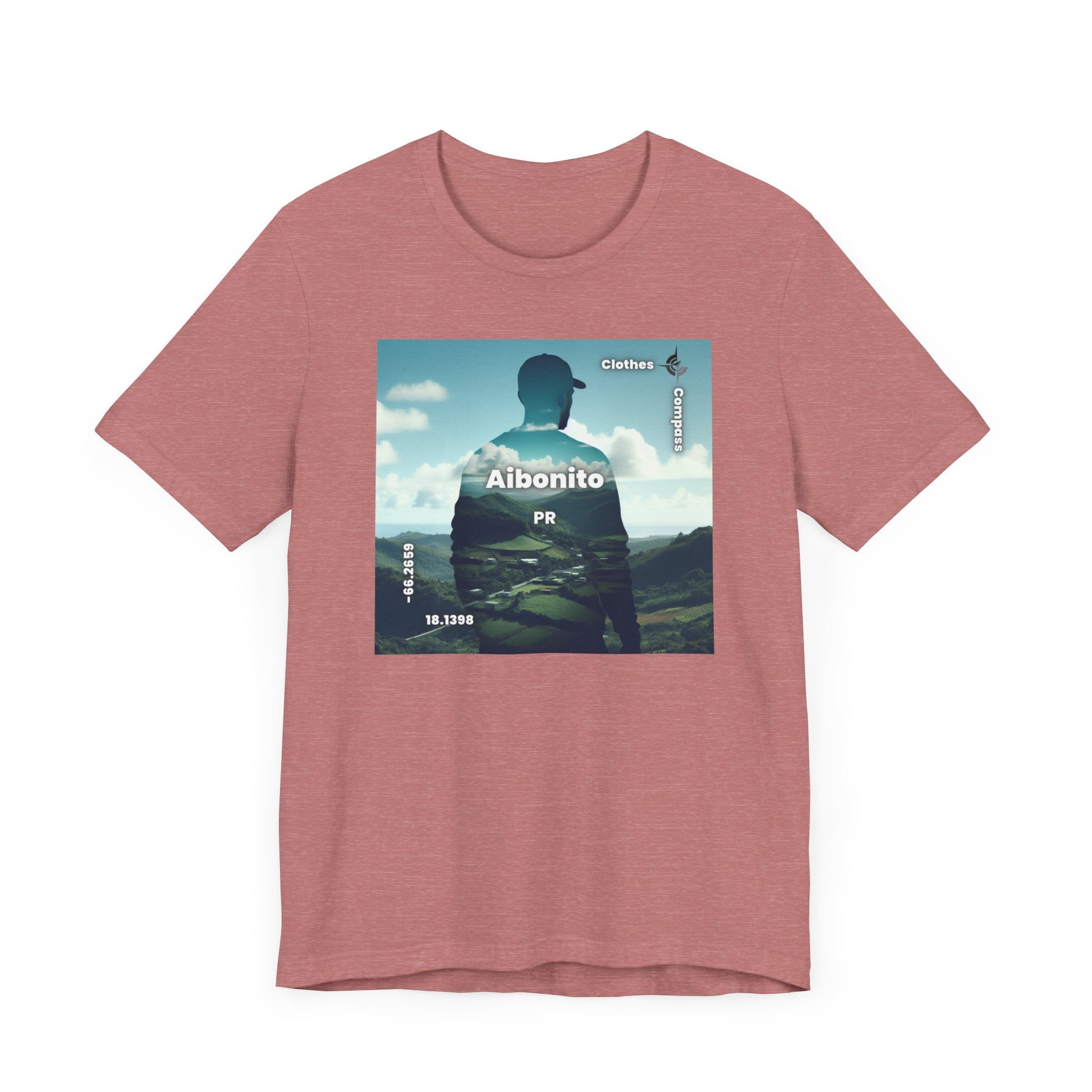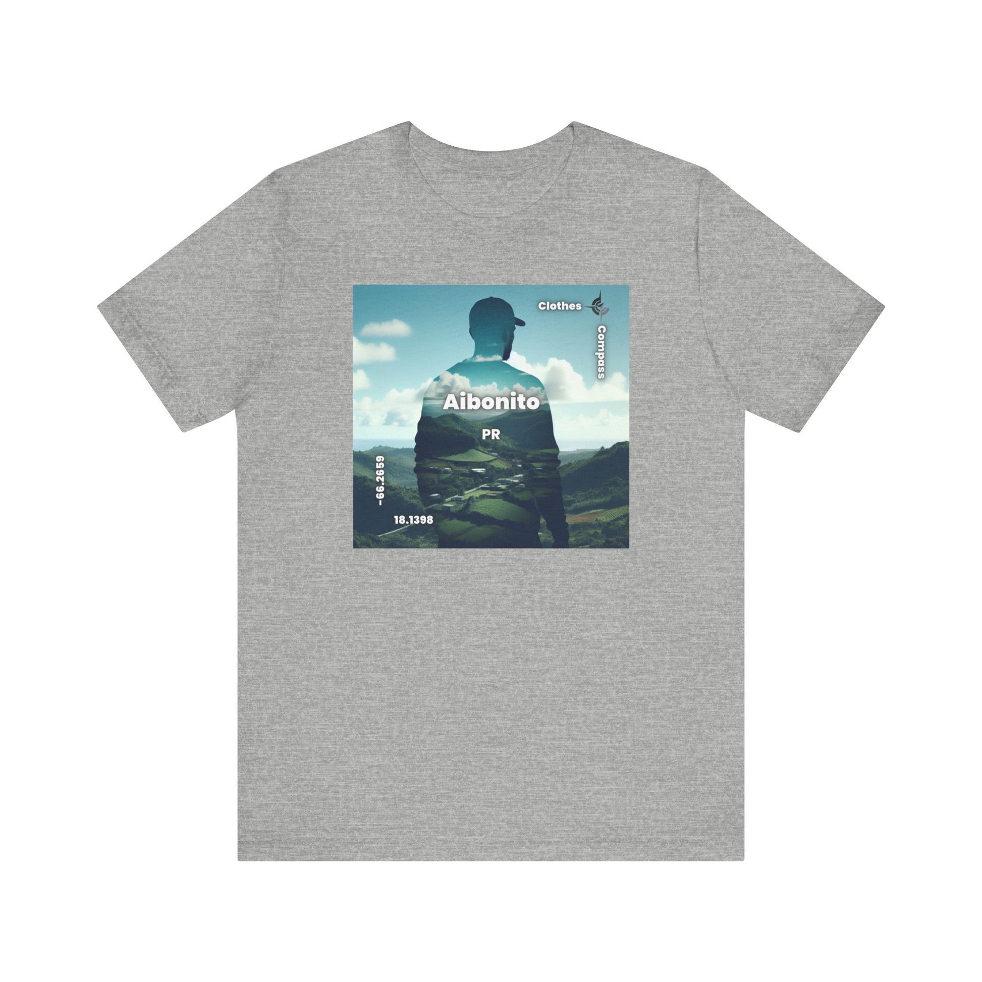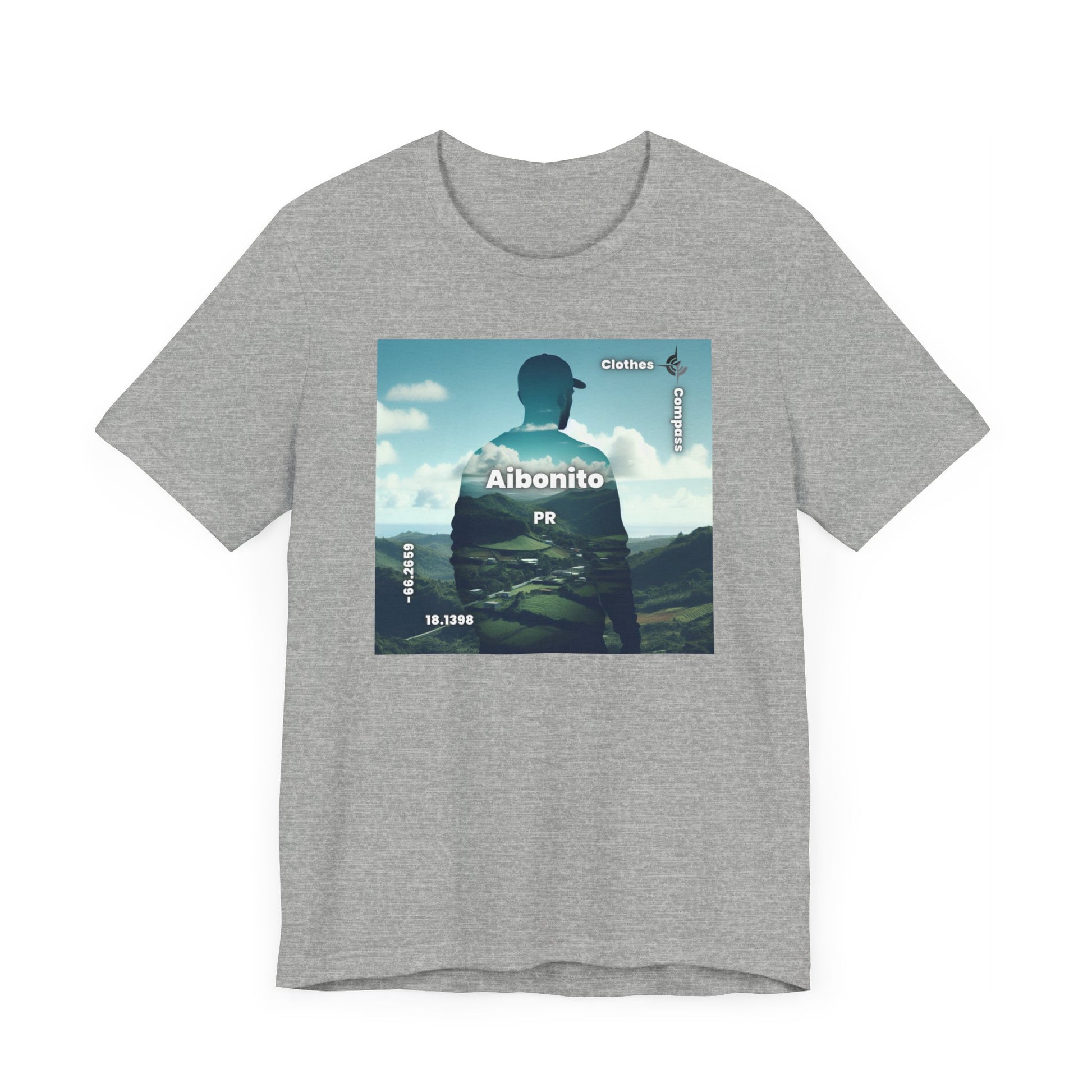 Introducing our newest streetwear tee featuring a stunning double exposure of a person's silhouette and a breathtaking view of Aibonito, PR. The photorealistic design captures the serene mood of the landscape, making it the perfect statement piece for